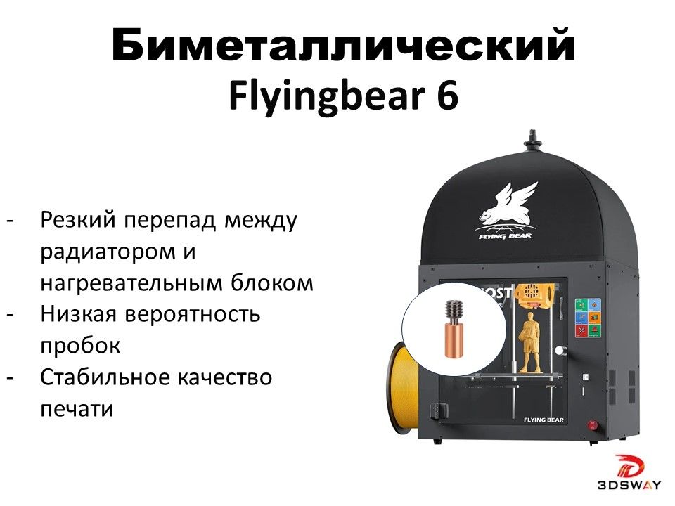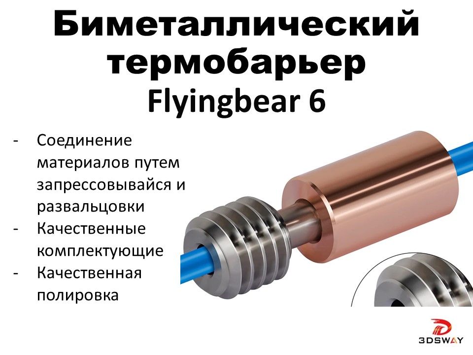 Биметаллический термобарьер для Flyingbear 6 форм-фактора медь+титан - это высококачественная запчасть для 3D-принтера, которая отлично подходит для любых задач печати. Он обеспечивает надежное и стабильное тепловое равновесие, что позволяет получать высококачественные и точные печатные модели.496 ₽
