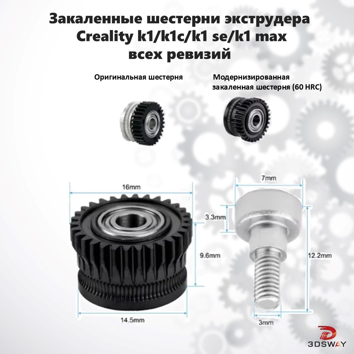 Представляем вам закаленные шестерни фидера для экструдеров K1, K1C, K1Max и Ender 3V3. Эти детали разработаны для повышения производительности вашего 3D-принтера, обеспечивая надежную и стабильную подачу материала. Закаленные шестерни фидера идеально подходят для тех, кто ценит высокое качество печати и долговечность компонентов.