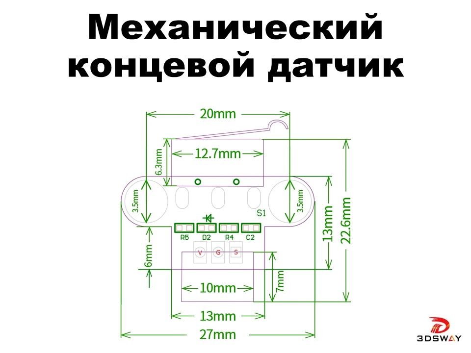 Механически концевой датчик EndStop для 3D принтера c кабелем