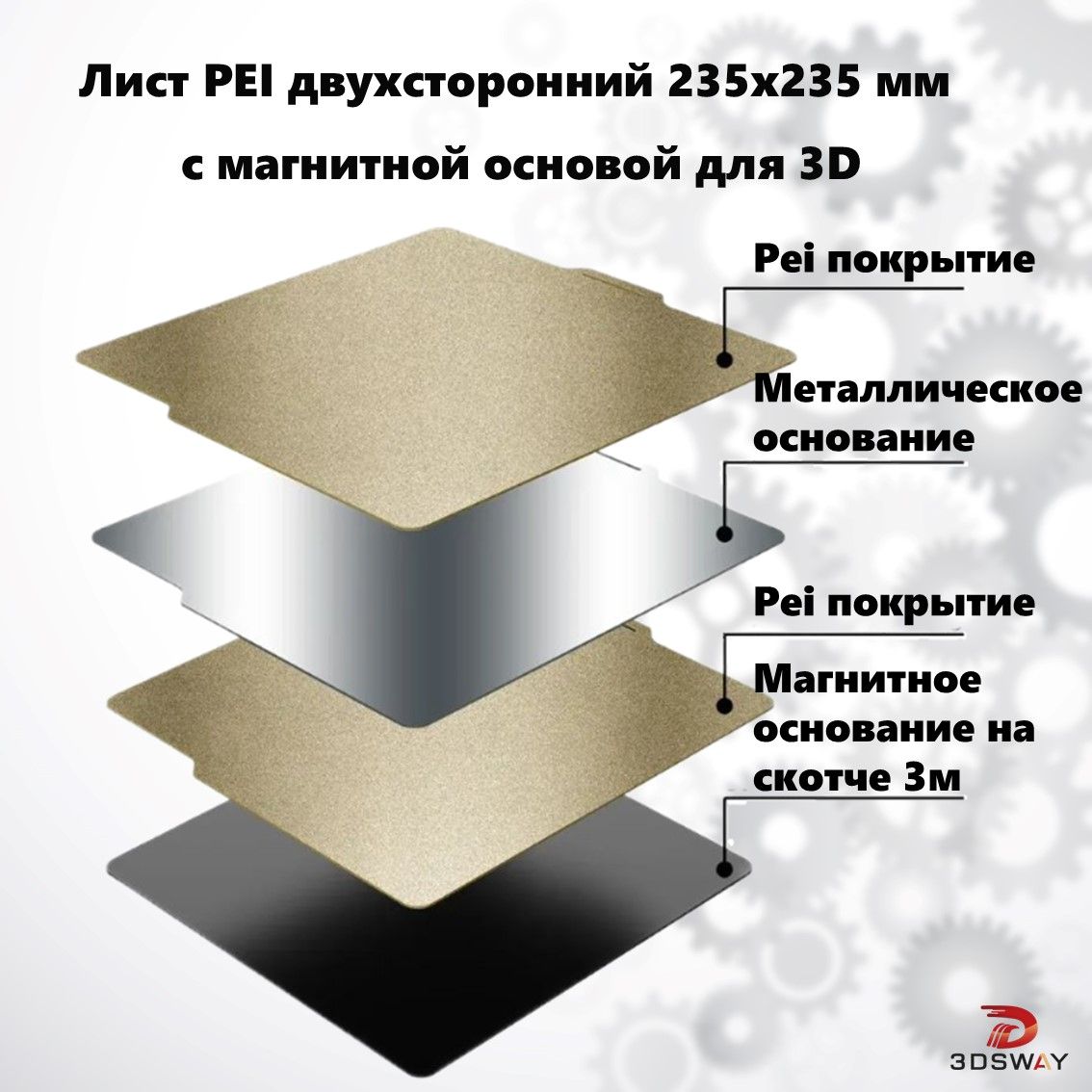 Подложка Pei 235*235 также обладает рядом других преимуществ, таких как простота установки и удаления, а также легкость очистки после использования. Она будет полезна как новичкам, так и профессионалам в области 3D-печати.