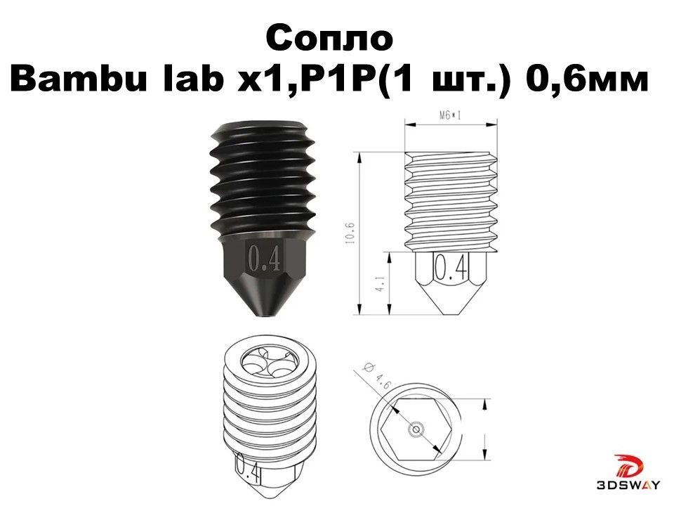 Сопло для хотэнда TZ для Bambu Lab X1, P1P (закаленная сталь) 0.6 мм - это высококачественная запчасть, предназначенная для использования с 3D-принтерами. Оно обеспечивает точную и стабильную экструзию пластика, позволяя создавать детали с высоким разрешением и детализацией.750 ₽