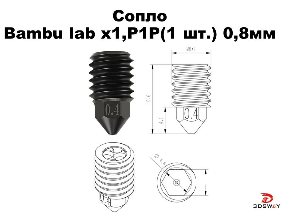 Сопло для хотэнда TZ для Bambu Lab X1, P1P (закаленная сталь) 0.8 мм - это высококачественная запчасть, предназначенная для использования с 3D-принтерами. Оно обеспечивает точную и стабильную экструзию пластика, позволяя создавать детали с высоким разрешением и детализацией.390 ₽